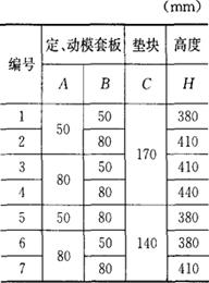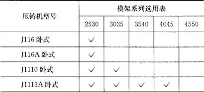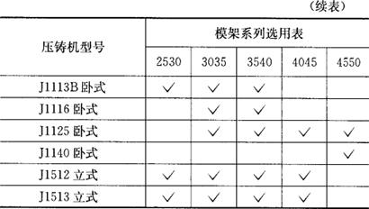 释义 | 压铸模标准模架 图8.3-1为上海申都仪表零件厂生产的压铸模标准模架。表8.3-1和图8.3-2分别为模架与压铸机选用参考表。 图8.3-1 压铸模标准模架 表8.3-1 模架与机床选用参考表 注:1.本标准的模具在安装时均考虑从压铸机上方吊入。 2.本标准的模具规格,以安装于国产压铸机型谱系列为主。 (a)2530型 (b)3035型 (c)3540型 (d)4045型 (e)4550型 图8.3-2 模架系列结构 选用压铸模标准模架的方法与选用注塑模标准模架的方法基本相同。只是模板的材质不同,与金属液体直接接触的成型零件(包括型腔、型芯、浇口套、分流锥、镶块等)要用耐高温材料:3Cr12W8V或4Cr5MoSiV;4Cr5W2SiV;4Cr5MoSiV1;4Cr4MoWSiV。 |