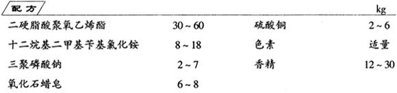 释义 | 厕用自动除臭清洗剂 制法 (1)将二硬脂酸聚氧乙烯酯、十二烷基二甲基苄基氯化铵、氧化石蜡皂放入容器中加热熔化,搅拌均匀。 (2)将硫酸铜、三聚磷酸钠在边搅拌边加热的条件下加至上述溶液中,制得黏度较大的糊状物。 (3)待糊状物降至50℃时,加入色素及香精搅匀。 (4)将糊状物倒入预先准备好的模具使其冷却成型,每个重量为50g左右。 (5)将成型品放入预制的笼形塑料外壳中,即为成品。使用时用尼龙线吊挂在坐便器内侧即可。 |