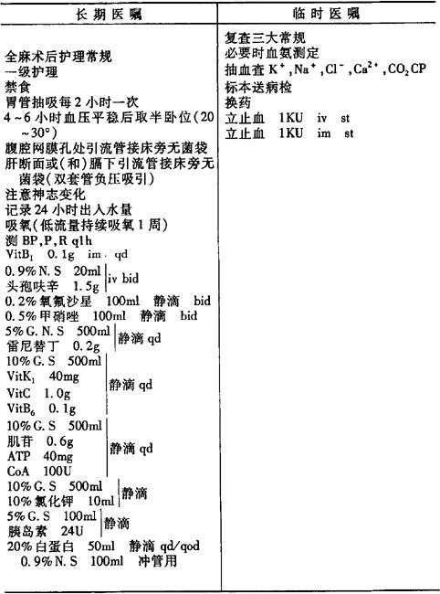 (6)术后补液应慎重,防止低血容量性休克和腹水的发生。
