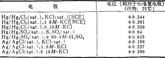 释义 | 参考电极的电极电位 注:sat.:Saturate,饱和溶液 SCE:Saturated Calomel Electrode,饱和甘汞电极 NCE:Normal Calomel Electrode,标准甘汞电极 |
