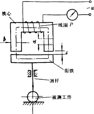 释义 | 参量放大法 参量放大法是将被测量微小的变化转换并放大为电学参量(如:电感、电容、电压、电流等)、光强分布(如干涉、衍射等)或其它物理量的变化,以便于细分和测量。根据微小量的变化转换成各种参量的工作原理不同,常用的参量放大技术可分为电感式、电容式、气动式、光电式等。 1.电感式参量放大 电感参量放大是将被测量的位移转换放大成电感量的变化,再经电路放大以电压信号给出。如图3.3-9所示的是电感传感器的原理图。当工件变化引起空气隙δ改变时,线圈中的电感值L发生变化: 图3.3-9 电感传感器原理图 式中N为线圈匝数;