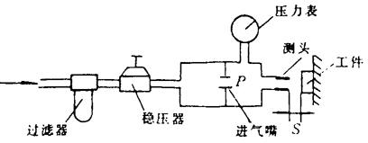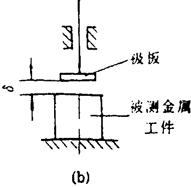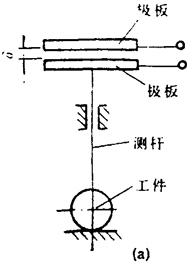 δ为空气隙厚度; S为空气隙截面积(S=a·b,m2); 由上式可知空气隙厚度δ和空气隙截面积5变化时,就能引起电感L的变化。其信号放大比为: 其中L和ΔL分别为电感量和电感变化量;δ和Δδ分别为空气间隙量和间隙变化量。电感式测微仪具有较高的放大比,目前其灵敏度可达0.01μm。 2.电容式参量放大 电容式参量放大是将被测量转换成极板间、极筒间或极板与被测件间的电容量的变化,再将电容的变化量引入专门电路,给出电压信号,确定被测工件的变化量,其原理如图3.3-10。图(a)是接触式结构,(b)是非接触式测量。 图3.3-10 电容传感器原理图 忽略电容器两端的边缘效应,其电容量为: 式中S为极板面积,d为极板间距,ε=8.85×10-12F/m为空气介电常数,其对间距d的放大比为: 电容式传感器易实现非接触测量,具有高倍放大的特点,目前其最高分辨率为0.001μm。 3.气动式参量放大 气动式参量放大技术是将具有恒压的压缩空气通过气动测量头的喷嘴,并经喷嘴与被测工件之间的间隙逸入大气,当被测工件变化导致间隙变化时,喷嘴内的压力或流量产生相应的变化,如图3.3-11所示。气动式压力传感器的原理是,当被测尺寸5变化时,喷嘴测头处气阻发生相应的改变,因而引起气室内压力的变化,这种传感器的放大比为: 图3.3-11 气动式位移传感器 这种气压转换型传感器的放大比可高达25000,最小测量单位达0.1~0.05μm。与气压转换型相对应的是气流型传感器,它将尺寸的变化转换为压缩空气流量变化。 4.光电式参量放大 光电式参量放大法是利用光学原理对某些特殊的被测参数进行转换后实现测量。随着激光及电荷耦合器件(CCD)的出现,光电式传感器应用正在不断发展。 光电传感器可以分为直接转换和间接转换两种类型。直接转换的光电式传感器是利用光学方法将被测参数的变化转换为光强信息,再用光电元件转换为电信号。常用的方法有透射法、反射法、衍射法及干涉法等。间接转换的光电式传感器是利用其它原理将被测参数的变化转换为光信息,由光电元件完成光电转换。常用的方法有:光电瞄准、激光扫描、光栅莫尔条纹等。有关光电式参量放大技术的应用在本节的前部分已经作过了介绍。 【参考文献】: [1]王因明主编,光学计量仪器设计,机械工业出版社,1982。 [2]薛实福、李庆祥编着,精密仪器设计,清华大学出版社,1991。 [3]叶声华主编,激光在精密计量中的应用,机械工业出版社,1980。 [4]罗南星主编,几何量计量技术简明教程,机械工业出版社,1993。 [5]角度计量编写组,角度计量,中国标准出版社,1984。 [6]童竞主编,几何量测量,机械工业出版社,1988。 [7]王江主编,现代计量测试技术,中国计量出版社,1990。 [8]蒋诚志编,计量光学,中国计量出版社,1989。 [9]梁铨廷主编,物理光学,机械工业出版社,1981。 [10]强锡富,于汶编,电路基础与电路量仪,哈尔滨工业大学出版社,1989。 [11]黑龙江省标准计量局、哈尔滨工业大学编,长度计量手册,科学出版社,1979。 [12]张国雄、沈生培主编,精密仪器电路,机械工业出版社,1987。 [13]几何量实用测试手册编委会,几何量实用测试手册,机械工业出版社,1985。 |