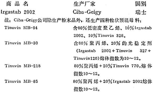 用途 本品为含磷的镍螯合型光稳定剂,对光氧化和热氧化都有很高的稳定作用。具有猝灭激发态和捕捉活性自由基的功能。适用于聚丙烯、聚乙烯、聚苯乙烯、聚氯乙烯、聚酯、聚酰胺、聚醋酸乙烯酯和合成橡胶等。特别是对聚丙烯薄膜、编织带和纤维的稳定效果尤佳。一般用量为0.1~1份,常与酚类抗氧剂并用。本品耐抽出性高,着色性小(即使与含硫助剂并用,高温加工时亦无变色之虞),印刷适性好,而且有一定的阻燃效果。本品与其它紫外线吸收剂、亚磷酸酯类和硫代酯等辅助抗氧剂并用均显示良好的协同效应。