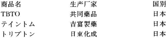 释义 | 双(三正丁基锡)氧化物 【结构式】: 【释文】: 性质 无色或淡黄色透明液体。分子量59.6。锡含量39.8±1%。凝固点<-45℃沸点182℃(267Pa)。闪点>212℃。相对密度1.160±0.015。溶于有机溶剂,不溶于水。 用途 本品可作为聚氯乙烯等塑料的防霉剂,具有很强的杀菌防霉效能。一般用量0.5~1%。将其溶于有机溶剂后配以表面活性剂,可使之易于在水中乳化。本品在使用浓度范围内几乎无毒。 国外生产厂 |