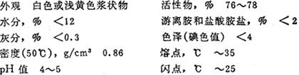 色泽(G/H)<5 游离胺和盐酸胺盐,%<2.0