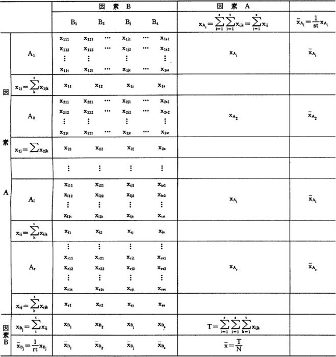 释义 | 双因素试验设计 当同时考察两个因素对实验指标是否存在显着性影响时,可以选择两因素的不同水平交叉搭配进行实验。例如有因素A和B,参加实验的水平数分别为r和s,不同水平之间两个组合后共有rs个实验方案。如果每一方案再重复t次,那么总的实验次数为n=rst。这种一个方案不漏的实验方法称为全面实验,也是双因素实验设计的基本思想。在双因素实验的方差分析中,除了分别检验两个因素对实验结果的显着性外,还要考察它们的联合作用的显着性。 依照费歇尔实验原则,双因素实验同样应当遵守完全随机化方法,必要时也要安排局部管理。但是,由于双因素实验的次数明显增多,在一些精度要求不高的或者时间要求紧迫的情况下,可以采用不重复或者不等重复的实验方法。所谓不等重复是指在不进行重复实验的方案中,只对个别预计是重要的水平或水平组合另增加几次实验,观察其重复精度。可见实验方法是具有一定灵活性的,但本节讨论的重点是等重复实验的方法。 1.双因素实验数据统计表 为了获得较多的信息,提高实验结论的精度,特别是欲考察是否存在两因素的交互作用时,都应该按照重复实验的方式设计实验。实验数据统计的格式如表4.3.3-1所示。 表4.3.3-1 双因素实验数据统计表 当t=1时,表明是没有重复的实验。数据的采集比较简单,每一水平组合实验所观察或测试值只有一个,列表计算比重复实验方便得多。 2.随机化方法 单因素实验是以每一个水平作为一个实验条件;双因素实验则是以其不同水平的组合作为一个实验条件。对于分别有r和s个水平的两因素,共有rs个实验条件。这时,随机化方法可分为两步进行。 (1)按实验条件编号 将因素A和r个水平A1,A2,…,Ar与因素B的s个水平B1,B2,…,Bs交错排列为A1B1,A2B1,…,ArB1,A1B2,A2B2,…,ArBs,共rs个组合的实验条件,依次编号。例如,A的水平数为4,B的水平数为3,可按表4.3.3-2形式编号。 表4.3.3-2 实验条件编号 (2)取随机数作为实验顺序 根据随机化原则,从等概率的随机置换表中任点一位数字起头,连续顺序组合成2位或3位数,以其大小依次对应组合编号排成实验顺序。例如用铅笔尖闭目点到21行的随机数为:658209347……,取两位数为一组,按随机顺序进行实验,其条件如表4.3-9所列。 表4.3.3-3 随机化实验顺序的设计 当要求实验精度较高时,可进行重复实验。如果重复实验的顺序亦按随机化的方法安排,即为完全随机化实验方法。对于小型的实验内容,只要事先拟定好如表4.3.3-3的形式,单独取其上下两行列出实验顺序——实验条件对应表,是不难操作的。比如化学成分及其配方比例作为因素与水平,实验前可以将配比称好,等分成相同的若干个重复实验条件,然后依随机化次序一一进行操作。 |