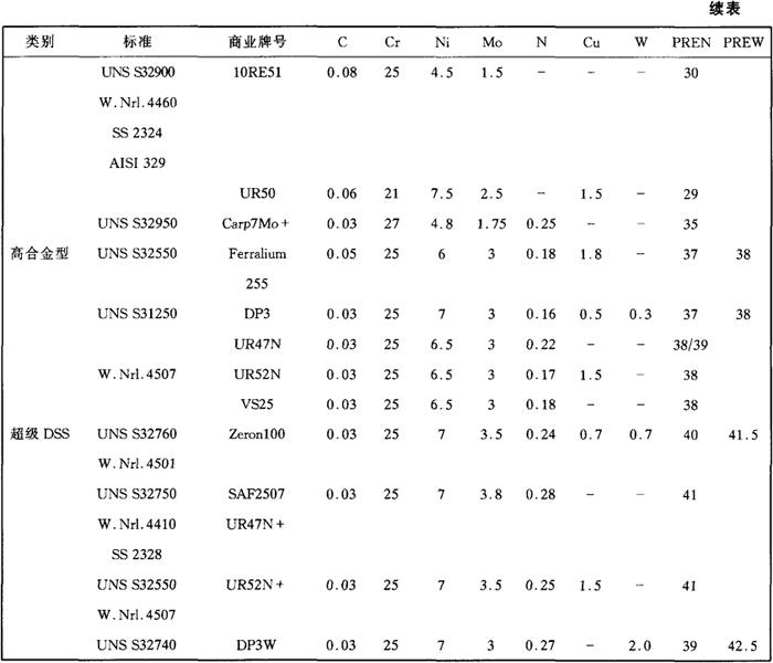释义 | 双相不锈钢 (1)历史 双相不锈钢已有80年的历史了,它的发展历经了三代,也是和冶炼技术的发展密不可分的。20世纪60年代初期,电炉炼出了超低碳不锈钢,从而解决了第一代双相不锈钢的晶间腐蚀问题。70年代初期,VOD、AOD精炼工艺的发展,尤其是AOD炉中能够控制氮的精确加入,从而促进了第二代含氮双相不锈钢的开发,加氮不仅提高了钢的耐局部腐蚀性能,而且解决了钢的焊接问题,使双相不锈钢成为一个可焊接的结构材料,大大拓宽了钢的应用范围,最终发展成与奥氏体、铁素体和马氏体不锈钢并列的一个新的钢类。到20世纪80年代末期,随着高铬高钼高氮双相不锈钢的问世,这已是属于第三代的能与某些高合金奥氏体不锈钢相媲美的超级双相不锈钢了。 所谓双相不锈钢是在它的固溶组织中铁素体相与奥氏体相约各占一半,一般最少相的含量也需要达到30%,因此它兼有铁素体不锈钢和奥氏体不锈钢的性能特点。 (2)特点 与奥氏体不锈钢相比,双相不锈钢的优势如下: ①屈服强度比普通奥氏体不锈钢高一倍多,且具有成型需要的足够的塑韧性。采用双相不锈钢制造储罐或压力容器的壁厚要比常用奥氏体不锈钢减少30%~50%,有利于降低成本。 ②具有优异的耐应力腐蚀破裂的能力,尤其在含氯离子的环境中,即使是含合金量最低的双相不锈钢也有比奥氏体不锈钢更高的耐应力腐蚀破裂的能力,应力腐蚀是普通奥氏体不锈钢难以解决的突出问题。 ③在许多介质中应用最普遍的2205双相不锈钢的耐腐蚀性优于普通的316L奥氏体不锈钢,而超级双相不锈钢具有极高的耐腐蚀性,在一些介质中,如醋酸、甲酸等甚至可以取代高合金奥氏体不锈钢,乃至耐蚀合金。 ④具有良好的耐局部腐蚀性能,与合金含量相当的奥氏体不锈钢相比,鉴于双相不锈钢的高强度和良好耐腐蚀性能,它的耐磨损腐蚀和腐蚀疲劳性能都优于奥氏体不锈钢。 ⑤比奥氏体不锈钢的线膨胀系数低,与碳钢接近,适合与碳钢连接,具有重要的工程意义,如生产复合板或衬里等。 ⑥不论在动载或静载条件下,比奥氏体不锈钢具有更高的能量吸收能力,这对于结构件应付突发事故如冲撞、爆炸等,双相不锈钢优势明显,有实际应用价值。 与奥氏体不锈钢相比,双相不锈钢的弱势如下: ①应用的普遍性和多面性不如奥氏体不锈钢,例如长期应用其使用温度必须控制在250℃以下。 ②其塑韧性较奥氏体不锈钢低,冷、热加工工艺和成型性能不如奥氏体不锈钢。 ③存在中温脆性区,需要严格控制热处理和焊接的工艺制度,以避免有害相的出现,损害性能。 双相不锈钢与奥氏体不锈钢相比存在弱势是由于双相不锈钢中有大量铁素体组织。 与铁素体不锈钢相比,双相不锈钢的优势如下: ①综合力学性能比铁素体不锈钢高,尤其是塑韧性。对脆性不如铁素体不锈钢那样敏感。 ②除耐应力腐蚀性能外,其他的耐局部腐蚀性能都优于铁素体不锈钢。 ③冷加工工艺性能和冷成型性能远优于铁素体不锈钢。 ④焊接性能也远优于铁素体不锈钢,一般焊前不需预热,焊后不需热处理。 ⑤应用范围较铁素体不锈钢宽。 双相不锈钢与铁素体不锈钢相比存在优势是由于双相不锈钢中有大量奥氏体组织。 与铁素体不锈钢相比,双相不锈钢的另一弱势是合金元素含量高,价格相对高,而且一般铁素体不锈钢中不含镍。 综上所述,可以概括地看出双相不锈钢的使用性能和工艺性能全貌,它以其优越的力学与耐腐蚀的综合性能赢得了使用者的青睐,已成为既节省重量又节省投资的优良的耐蚀工程材料。 (3)分类及代表牌号 双相不锈钢一般可分为四类: 第一类属低合金型,代表牌号是UNSS32304(23Cr-4Ni-0.1N),钢中不含钼,耐点蚀当量,PRE值为24~25,在耐应力腐蚀方面可代替AISI304(0Cr18Ni9)或316(0Cr17Ni12Mo2)使用。 第二类属中合金型,代表牌号是UNSS31803(22Cr-5Ni-3Mo-0.15N),PRE值为32~33,他的耐蚀性能介于AISI316L(00Cr17Ni14Mo2)和6%Mo+N奥氏体不锈钢之间。 第三类属高合金型,一般含25%Cr,还含有钼和氮,有的还含有铜和钨,标准牌号有UNSS32550(25Cr-6Ni-3Mo-2Cu-0.2N),PRE值为38~39,这类钢的耐蚀性能高于22%Cr的双相不锈钢。 第四类属超级双相不锈钢型,含高钼和氮,标准牌号有UNSS32750(25Cr-7Ni-3.7Mo-0.3N),有的也含钨和铜,PRE值大于40,可适用于苛刻的介质条件,具有良好的耐蚀与力学综合性能,可与超级奥氏体不锈钢相媲美。 双相不锈钢的代表牌号见表4-1。 表4-1 双相不锈钢(DSS)代表牌号的主要化学成分和耐点蚀当量值(PREN) 这些牌号主要适用于变形材,与其相当的牌号也可用于铸件。中国开发研制的双相不锈钢见表4-2。 表4-2 中国开发研制的双相不锈钢 (4)用途 双相不锈钢已广泛地应用于各工业领域,诸如纸浆和造纸、陆上和海上的油气工业、化学加工工业、运输业(化学品船和槽车)、制药和食品工业以及建筑业等。多用制反应容器,各种工业设备和输送管道等。在大多数应用中,双相不锈钢被认为是具有成本效益的材料,填补了普通奥氏体不锈钢如316和高合金奥氏体不锈钢之间的空白。 尽管一般认为使用双相不锈钢是因为它们有耐化学产品的腐蚀性能,例如尿素和化肥生产、有机酸生产以及含硫化氢天然气的加工等遇到的一些介质,但最重要的应用是用在那些奥氏体不锈钢不具有足够耐点蚀和应力腐蚀断裂性能的含氯离子热水溶液介质中,诸如热交换器、冷凝器和各种容器等设备。 (5)安全使用