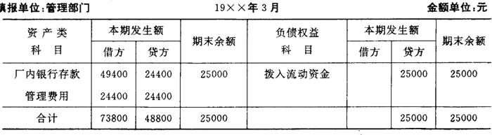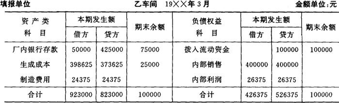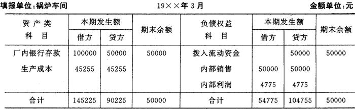 释义 | 双轨制下各开户单位的会计处理 一、生产车间的会计核算 在工业企业中,由于任务的不同,生产车间分为基本生产车间和辅助生产车间两种。下面简要地分别说明在双轨制下生产车间关于厂内银行业务的会计核算方法。 在双轨制下,生产车间使用的会计科目与单轨制相同。只是由于会计业务处理简繁程度的不同而略有差别,一般可设置会计科目如图表5-59所示。 图表5-59 在双轨制下,基本生产车间所用的会计凭证。帐簿和报表与单轨制相同。 现针对生产车间的主要会计事项处理举例说明。承前例将某工厂甲、乙两个基本生产车间关于厂内银行主要业务的会计核算分别说明如下: (一)甲生产车间的会计核算 本车间本月发生下列各基会计事项: 1.拨入定额流动资金50000元,作会计分录如下: 借:厂内银行存款 50000 贷:拨入流动资金 50000 2.将本车间实际占用的流动资金:A产品的在产品25000元,B产品的在产品8000元上交厂内银行。作会计分录如下: 借:生产成本——基本生产成本——A产品 25000 ——B产品 8000 贷:厂内银行存款 33000 3.将本车间已完工的B产品30吨,计划单价400元,交销售科成品库,作会计分录如下: 借:厂内银行存款 12000 贷:内部销售 12000 4.将已完工的A产品380吨,内部计划单价500元转入二车间,作会计分录如下: 借:厂内银行存款 190000 贷:内部销售 190000 5.从供应科领用甲材料3000吨,计划单价50元,直接用于生产A产品,领用乙材料400吨,计划单价100元,直接用于生产B产品,合计190000元,作会计分录如下: 借:生产成本——基本生产——A产品 150000 ——B产品 40000 贷:厂内银行存款 190000 6.从供应科领用材料10000元,作会计分录如下: 借:制造费用 10000 贷:厂内银行存款 10000 7.支付本车间工资,A产品生产工人工资4000元,B产品生产工人工资2000元,车间管理人员工资1500元,作会计分录如下: 借:生产成本——基本生产成本——A产品 4000 ——B产品 2000 制造费用 1500 贷:厂内银行存款 7500 8.计提上交折旧费10000元,作会计分录如下: 借:制造费用 10000 贷:厂内银行存款 10000 9.从供应科领用B产品包装物1500 元,作会计分录如下: 借:生产成本——基本生产成本——B产品 1500 贷:厂内银行存款 1500 10.支付水费750元,其中A产品500元、B产品250元,作会计分录如下: 借:生产成本——基本生产成本——A产品 500 ——B产品 250 贷:厂内银行存款 750 11.支付动力车间电费9150元,其中A产品6000元,B产品3000车间管理部门150元,作会计分录如下: 借:生产成本——基本生产成本——A产品 6000 ——B产品 3000 制造费用 150 贷:厂内银行存款 9150 12.支付动力车间劳务费1200元,作会计分录如下: 借:制造费用 1200 贷:厂内银行存款 1200 13.支付锅炉车间的蒸汽费22500元,其中,A产品5000元,B产品1500元,车间管理部门2500元,作会计分录如下: 借:生产成本——基本生产成本——A产品 5000 ——B产品 15000 制造费用 2500 贷:厂内银行存款 22500 14.本月发生制造费用25350元,按A、B两种产品的产量分配,如图表5-60所示。 图表5-60 A产品应分配的制造费用 25350×68%=17238(元) B产品应分配的制造费用 25350×32%=8112(元) 根据分配结果,作会计分录如下: 借:生产成本——基本生产成本——A产品 17238 ——B产品 8112 贷:制造费用 25350 15.本车间本月完工B产品170吨,前已交销费科成品库30吨,现结算其余140吨,计划单价400元,合计56000元,作会计分录如下: 借:厂内银行存款 56000 贷:内部销售 56000 16.结转本车间B产品完工产品成本65862元,作会计分录如下: 借:内部销售 65862 贷:生产成本——基本生产成本——B产品 65862 17.结转本车间A产品完工产品成本187738元,作会计分录如下: 借:内部销售 187738 贷:生产成本——基本生产成本——A产品 187738 18.结转本车间内部销售利润4400元,作会计分录如下: 借:内部销售 4400 贷:内部利润 4400 19.上交本月内部利润4400元,作会计分录如下: 借:内部利润 4400 贷:厂内银行存款 4400 将上述各项同会计事项登记总帐和明细帐,如图5-61至图5-67所示: 图表5-61 厂内银行存款 图表5-62 生产成本——基本生产成本-A 图表5-63 拨入流动资金 图表5-64 生产成本——基本生产成本-B 图表5-65 制造费用 图表5-66 内部利润 图表5-67 内部销售 根据总帐编制总帐科目发生额余额表及内部利润表。如图表5-68和图表5-69所示。 图表5-68 图表5-69 内部利润表 (二)乙生产车间的会计核算 乙车间3月发生下列会计事项。 1.拨入定额流动资金100000元,做会计分录如下: 借:厂内银行存款 100000 贷:拨入流动资金 100000 2.上交本车间实际占用的流动资金—-C产品的在产品100000元,做会计分录如下: 借:基本生产成本——C产品 100000 贷:厂内银行存款 100000 3.从一车间转入A产品190吨,计划单价500元,合计190000元,做会计分录如下: 借:基本生产成本 190000 贷:厂内银行存款 190000 4.从供应科领用甲材料50吨,计划单价50元,合计50000元,做会计分录如下: 借:基本生产成本——C产品 50000 贷:厂内银行存款 50000 5.从供应部门领用辅助材料15000元,做会计分录如下: 借:制造费用 15000 贷:厂内银行存款 15000 6.支付车间工资,C产品生产工人工资4000元,车间管理人员1000元,做会计分录如下: 借:基本生产成本——C产品 4000 制造费用 1000 贷:厂内银行存款 5000 7.计提并上交折旧费5000元,做会计划分录如下: 借:制造费用 5000 贷:厂内银行存款 5000 8.从供应科领用C产品包装物2500元,做会计分录如下: 借:基本生产成本——C产品