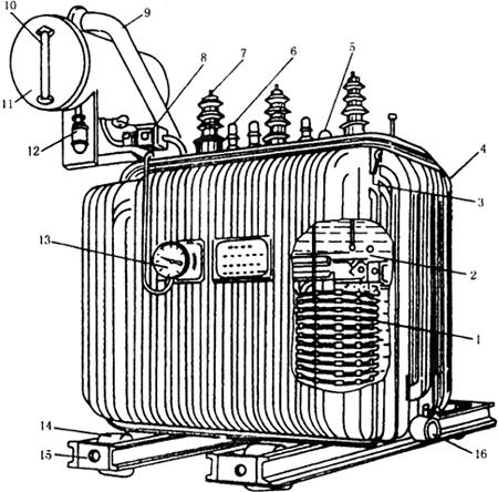 释义 | 变压器防火 变压器是电力系统的重要元件之一,在工农业生产、人民生活和国民经济各个部门中应用十分广泛,电力系统要将发电厂所产生的强大电功率输送至很远的用户,必须将发电机的端电压升高,通过高压输电线路将电能输送至降压变电站或区域变电站,降压后再通过配电线路将电能送至用户区,再经配电变压器降压以供用户使用。变压器在电力系统中的应用如图4-3-11所示。 图4-3-11 变压器在电力系统中的作用 从图中可以看出,若没有变压器,就需将发电机输出的电功率直接输送至远离发电厂的 用户,这样强大的电流(600MW发电机定子电流为19200A,350MW发电机组定子电流为12500A)将在输电线路上产生很大的电压降落,并引起很大的功率损耗,致使大量电能消耗在送电线路上,且难以保证电压合格。一般来讲,当发电机的端电压为6~10kV时,最多只能把2~3MW的功率输送至15km远的用户。而制造电压高于35kV的发电机,目前在技术上还有许多困难。发电机机端电压目前多为10.5kV、15.75kV、18kV及20kV。因此,电能远距离输送就必须将电压升高(相应的电流就减少)。电压越高,输送的功率越大,输送的距离也愈远。当输电线路电压为110kV时,可以将50MW的功率输送到50~150km远的区域;当电压为220kV时,可以将100~200MW的功率送到200~300km远的区域;当采用500~750kV的超高电压时,可以将1000~2500MW的强大功率送到500~1500km远的区域,如500kV平武线,全长610km,设计输送功率为1000MW;直流500kV的葛(洲坝)-上(海)线,全长1044km,设计输送功率1200MW;前苏联1150kV特高压线路,1984年已经投入运行,准备将容量为5000~5500MW的强大功率,由埃基巴斯图兹输送至1900km以外的前苏联欧洲部分中央地区和乌拉尔地区。1990年前苏联1150kV线路总长度已达3600km,将西伯利亚、哈萨克斯坦及乌拉尔电力系统连成一个整体。待我国三峡水力发电工程投产时,将需要采用特高电压(750~1150kV)的输电线路向华东、华北及全国输送电能,最大输送功率将达到5000~7000MW。届时,全国大区电网将连成一个整体——全国电网。 随着电力系统的发展、输电线路电压的提高、输送容量的增加,对变压器的要求也越来越高,要求变压器的电压与输电线路相匹配,要求变压器性能更好、技术经济指标更先进,安全运行更可靠。 电力系统是一个有机的整体,电力系统中变压器的容量与发电容量必须配套,一般来讲每1kW的发电机容量,需要配备5~7kVA的变压器容量,才能够满足输、配、用的要求。由此看出变压器在电力系统中的地位是非常重要的。 变压器除了在电力系统中大量应用外,还广泛的应用于冶金工业、化学工业、通信系统、无线电工程等部门中。如电炉变压器、电焊变压器、整流变压器、仪表变压器等等。因此变压器的种类越来越多,结构也越来越复杂,对变压器的技术性能和安全可靠性要求越来越高。 (一)变压器的分类和结构简介 1.变压器的分类 (1)按相数分类,可分为单相和三相变压器,容量很小的变压器大多是单相的;容量较大的和用在电力系统中的大多是三相变压器。但是,巨型变压器受运输条件的限制,大多是制造成单相的(或单相自耦的),再连接成三相变压器组,如额定容量为250/250/40MVA、电压为550/242/20kV的单相自耦变压器,应用于平武工程的姚孟和双河站;国外有容量为1000/1000/300MVA、电压为500/275/63kV的单相自耦变压器,用于500kV的开关站或升压站。德国1975年已经生产出电压为1150kV,容量为1800MVA的单相大型变压器。三相变压器的容量也有很大的提高,目前1500MVA、765kV三相大型升压变压器(与1300MW汽轮发电机组配套)已经投入运行。国外有2000MVA、420/27kV的三相变压器与发电机组成发电机变压器组,升压至420kV,通过超高压输电线路向远距离输送电能,总重820t(铁芯和绕组重632t)。 (2)按绕组和铁芯的相对位置来分,可分为内铁芯式(芯式)和外铁芯式(壳式)两种。目前应用较广的是内铁芯式变压器。超高压、大容量及特殊用途的变压器也有采用壳式变压器结构的(我国500kV电网中采用有壳式变压器)。 (3)按冷却方式来分,有油浸风冷(ONAF)、油浸自冷(ONAN)、强迫油循环风冷(OFAF)或水冷(OFWF)、强油导向循环风冷(ODAF)、强油导向循环水冷(ODWF)变压器等。大型电力变压器多采用强迫油循环风冷或水冷式变压器,因为这种冷却方式的冷却效果最好,有利于大型变压器的冷却。 (4)按在电力系统中的作用来分类,可分为升压变压器、降压变压器、联络变压器、配电变压器及直流输电的换流变压器等。 (5)按变压器的具体用途来分,除了用于电力系统中传输功率的电力变压器之外,还有其它特殊用途的变压器,如电炉变压器、整流变压器、试验变压器、测量用变压器、互感器、调压器和电焊变压器等。 (6)按绕组的数量和结构不同,可分为双绕组、三绕组、多绕组、自耦和分裂变压器等。 ①双绕组电力变压器每相芯柱上有两个静止线圈,三相双绕组电力变压器在电力系统中应用最广泛。 ②三绕组变压器每个芯柱有三个静止的线圈,以两种不同的电压向系统供电,在电力系统中应用较广。多绕组变压器与三绕组变压器结构相同,差别仅为每个芯柱上的绕组数多于三个。 ③自耦电力变压器的特点只有一个绕组,绕组的一部分(共用部分)既是一次绕组,又是二次绕组,一次绕组和二次绕组有着电路的联系。三相电力自耦变压器接成星形连接,中性点引出直接接地。为了消除