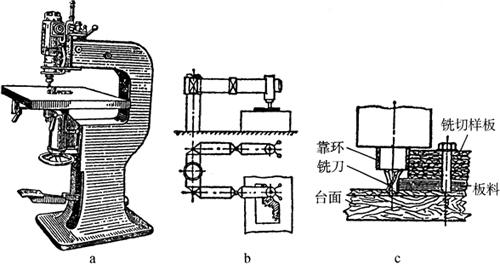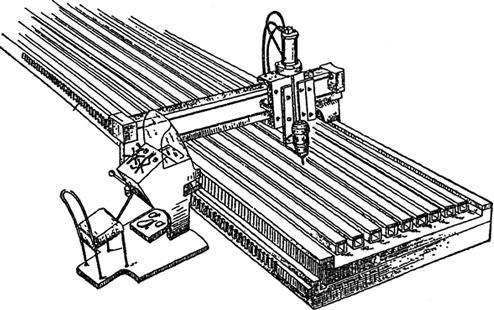 释义 | 叠料铣切 铣切下料是利用高速旋转的铣刀对成叠的板料按号料样板进行铣切。在汽车、飞机、石油设备等大型企业批量生产中,数量较大的大、中型尺寸的曲线外形展开料,主要是采用数层板叠摞铣切下料,即可保证产品质量、降低成本,又可提高工作效率。 (一)成型样板铣切 在钣金传统生产中,尺寸相对较小的展开料,是用钣金立铣下料,其工作原理如图8-9a所示。铣床的工作特点是工件移动,铣刀架不动,铣刀在固定位置铣切;靠柱与铣刀的直径相同。铣切过程中,手工将夹紧的成叠板料沿台面推动,使样板始终保持紧贴靠柱,即可铣出与样板完全一样的毛料。 图8-9 钣金成叠铣切 a.立铣下料 b.回臂铣钻 c.铣切原理 尺寸相对较大的展开料,是采用回臂铣床下料(图8-9b),铣床支柱上的悬臂装有两个铰接式的活动支臂,支臂的端头分别装有钻头和铣头,可在铣切前后用钻头钻削各种工艺孔,如图8-9c为其工作原理。 铣切时,将成叠的板料压紧在台面上,铣切样板紧贴铣头上的靠环固定在板料上,相比立铣下料,靠环与铣刀直径不等;工件不动,铣刀架移动,即手工推动回臂,使铣头上的靠环压向铣切样板,可铣出与样板外形相似而尺寸稍大的毛料。 一般铣刀直径为8mm,靠环直径为19mm,所以铣出的毛料比铣切样板尺寸大,即1/2×(19-8)=5.5(mm)。 (二)靠模铣切 图8-10为龙门式钣金靠模铣床,龙门横梁上安装的铣头,由手轮驱使齿轮齿条带动实现横向移动,由可控硅控制直流电动机的转速,驱使齿轮齿条带动实现纵向送进。 图8-10 龙门式靠模铣切 龙门架既可沿机床台面纵向运动,又可协调纵、横方向的送进,保证铣头跟随靠模运动,还可驱使连接其上的座椅带人一同纵向移动,使笨重的手工送进、手工下料实现了机械化操作。 尤其近年来随着数控技术的发展,从液压仿形和计算机直接控制(DNC)穿孔纸带式数控系统控制铣头的运动,到计算机集成制造系统(CIMS),铣切下料时,每次铣切的总厚度可达12~30mm,不仅使铣切下料的生产率、加工精度和材料利用率都大大提高,还使铣切下料工作自动化,节省时间和人力。 |