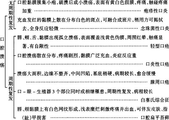 释义 | 口腔溃疡 口腔溃疡,是口腔黏膜疾病常见症状之一。溃疡可能单独发生在口腔,也可能同时伴发有皮肤、眼、生殖器或其他器官的损害。有的溃疡具有典型的周期性复发的特点,有的则是全身疾病口腔表征中的一个症状,临床诊断时需详细询问病史、系统检查身体,结合辅助诊断,综合分析判断。 【诊断思路】 |