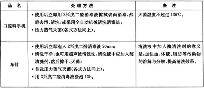 口腔器材(械)根据其污染后给病人造成的危害程度及材质不同进行不同的处理。