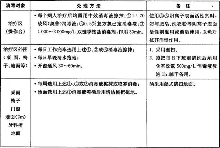 2.治疗区的操作台,在治疗每个病人后均需用中效消毒剂消毒(擦拭),治疗区外围应在每天工作结束后消毒(擦拭物表)及通风。