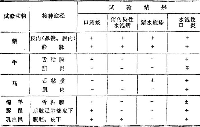 (二)其他动物接种试验 口蹄疫的其他动物接种试验见表2-1。