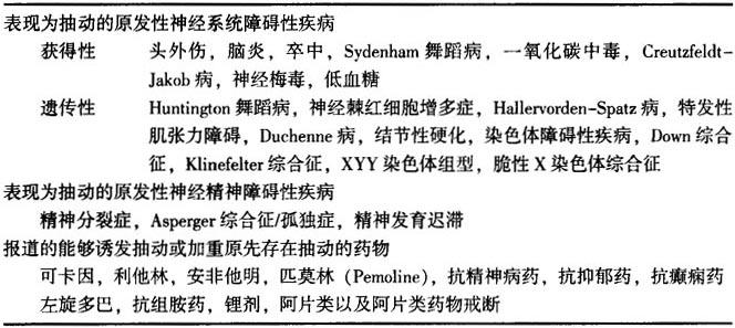 释义 | 口面部异常运动的诊断与治疗 一、异常运动的概念 异常运动是指骨骼肌的不随意收缩产生的运动,可发生在全身任何具有骨骼肌分布的部位,并可表现为多种形式。 二、异常运动的类型 异常运动的形式有: 1.震颤(tremor) 两组相互拮抗肌肉不随意的交替收缩,产生部分躯体关节的节律性抖动。震颤的形式在不同疾病的形式各异,如静止性肢体震颤见于帕金森病、特发性震颤、肝豆状核变性(Wilson disease)等;扑翼样震颤见于肝昏迷、尿毒症等全身代谢性疾病;意向性震颤见于小脑病变等。 2.扭转痉挛(torsion-spasm) 是一种由于肌张力障碍引起的不自主运动,表现为四肢近端以躯干为轴向一侧进行的缓慢、强烈的不随意性扭转运动。 3.舞蹈样运动(chorea) 是发生在近端肌群,突然出现快速、无目的、不规律和非对称性的肌肉大幅度收缩所致的舞动。 4.手足徐动(athetosis) 又称指划运动或指痉挛症,是发生在肢体远端不随意性的缓慢屈伸运动。 5.痉挛(spasms) 是单块肌肉或一组肌群的不随意性短暂或持续性收缩,如面肌痉挛。 6.抽搐(tic) 一组肌肉或肌群重复、刻板的收缩,如癫痫发作。 三、口面部异常运动的相关神经系统疾病与治疗原则 面部仅占机体的很少体积,却是分布肌肉最多的部位,复杂多变的表情肌运动是人类心理活动的窗口。然而,面部不自主异常运动则使病人丧失了通过面部表情肌运动正确地表达心理活动的功能。不自主多变的面部肌肉收缩可能出现异样的表情,且可见于多种疾病。口面部的异常运动形式即可见到规律性的局限肌肉抽搐或痉挛,如面肌抽搐或面肌痉挛;也可见于无规律的表情肌收缩,如挤眉弄眼、噘嘴伸舌等。口面部异常运动可能见于多种疾病,如节律的局限性面部肌束或肌群收缩可见于面肌抽搐、面肌痉挛或癫痫的部分性发作;无规律的表情肌异常运动则表现为突发的挤眉弄眼或噘嘴伸舌,可见于舞蹈病、抽动秽语综合征(Tourette syndrome)、肝豆状核变性、口部运动障碍、Meige综合征等;下颌、口唇或舌部的震颤则可见于特发性震颤;软腭震颤则见于橄榄—脑桥—小脑萎缩(olivopontocerebellar atrophy,OPCA)。 1.面肌抽搐或面肌痉挛 面肌抽搐是面神经支配的少量肌束的不自主收缩,多发生在眼部和口角处,临床检查时可发现面部的局部“肉丝样跳动”,但并不引起面部表情变化。面肌抽搐多无明显诱因,部分病人可在长期睡眠状态不佳或精神紧张状态下发生。 面肌痉挛是面神经支配的若干肌群的不随意收缩,当眼轮匝肌或提口角肌同时收缩,且持续数秒、甚至更长时间时病人面部多呈强制性的持续挤眼和口角偏斜。面肌痉挛可见于曾经具有周围性面神经损害的疾病,如Bell麻痹或Hunt综合征病后,出现的时间在面神经麻痹后的数月或数年不等;也可见于面神经干周围具有刺激性病灶,如微血管瘤的病人,或由面肌抽搐发展而来。 面肌抽搐与面肌痉挛的治疗原则:①面肌抽搐可采用鼓励病人充分休息、改善睡眠,消除紧张情绪,同时合并服用卡马西平(得理多)或安定类具有稳定膜电位、镇定和具有肌肉松弛的药物;②面肌痉挛的处理则根据病人的具体情况选择保守或手术治疗。保守治疗除了选用面肌抽搐的药物之外,也可使用肉毒毒素(BTX-A),并在痉挛的肌肉进行局部封闭注射来抑制痉挛发作,但此方法的有效期常较短暂,持续数周或数月仍可复发,且因药物剂量不易掌握和过量后容易导致短暂全身肌肉无力的弊端,应当慎重使用。当病人因严重面肌痉挛影响生活与工作、且不能忍受时,可采用手术治疗。面神经拨离可减少面神经周围的病变对面神经干的刺激,从而减轻面肌痉挛;面神经切断则可彻底根治面肌痉挛,但切断后的神经将永不恢复,并留下不可逆的周围性面肌瘫痪,因此选择该治疗宜慎重。 2.癫痫发作(epileptic seizure) 大脑皮层头面部运动区的皮层细胞异常放电则产生癫痫的部分性发作,表现为一侧口角或面部肌肉的节律性抽搐伴眼球单向凝视,可不伴有意识丧失及肢体抽搐。当抽搐发生时,病人的脑电图在单个导联上可见到局灶的痫性放电,即尖波或棘波。 癫痫发作的治疗可选用卡马西平、苯妥英钠、苯巴比妥和丙戊酸钠、妥泰等抗癫痫药物口服或肌肉注射苯巴比妥钠或安定等药物。详细内容参考痫性发作章节。 3.舞蹈病(chorea) 舞蹈样动作是以肢体大关节为轴心进行的不随意、无目的、不规则和非对称性的大幅度急速运动。当口面部出现类似的异常运动时多表现为挤眼耸眉、张口伸缩舌头等动作。舞蹈病可具有多种类型:①小舞蹈病以儿童多见,常有咽部(链球菌)感染史,除具有舞蹈样动作外,还表现发热、关节红肿疼痛等。治疗以抗生素(抗链球菌的青霉素)为主,合并使用水杨酸类抗风湿的药物;②Huntington舞蹈病多以老年起病,有家族史,除具有舞蹈样动作外还表现为进行性全面智能减退的痴呆,并可有癫痫发作。目前尚无有效的药物治疗。 4.抽动秽语综合征(Gilles de la Tourette syndrome) 抽动是指突然、快速、无目的、反复、无节律性、刻板的运动或发声。抽动或者短暂,持续时间连续不足12个月;或者为慢性抽动,病程超过1年以上。抽动又分为特发性和继发性两种。表现为简单性抽动和复杂性抽动,见表26-1。抽动秽语综合征是一种原因不明的运动障碍性疾病,又称慢性多发性抽动(chronic multiple tic),简称Tourette综合征。Tourette综合征是一种