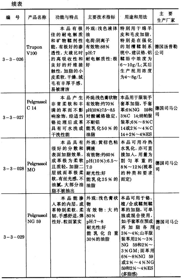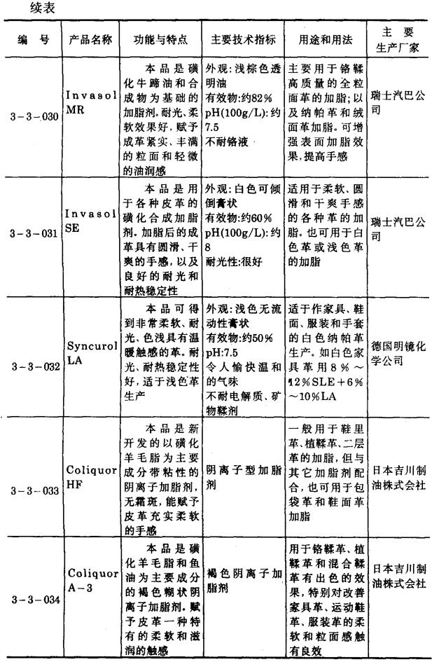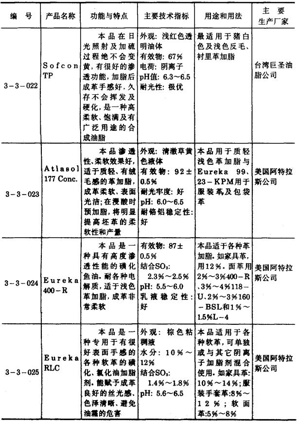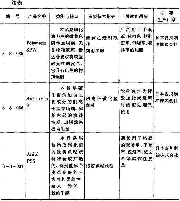 其它磺化油类加脂剂产品 3-3-022~3-3-037