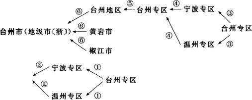 释义 | 台州市 位于东经121.1°、北纬28.8°。 ①1949年设台州专区,专署驻临海县,下辖临海县、天台县、宁海县、温岭县、三门县、黄岩县、仙居县等7县;1954年撤销台州专区,将临海县、天台县、三门县划归宁波专区;黄岩县、温岭县、仙居县3县及海门区划归温州专区。②1957年重设台州专区,专署仍驻临海县。原属宁波专区的临海县、宁海县、三门县、仙居县、天台县5县,以及原属温州专区的温岭县、黄岩县划入台州专区。③1958年12月再次撤销台州专区,将临海县、温岭县、黄岩县、仙居县4县划归温州专区;天台县划归宁波专区。④1962年复设台州专区,专署驻临海县;将温州专区所属的临海县、温岭县(含玉环县)、仙居县、黄岩县和宁波专区的天台县划入台州专区。⑤1970年台州专区改称台州地区。⑥1994年8月22日,经国务院批准,撤销台州地区和黄岩市、椒江市,设立台州市(地级市)。 下设椒江区、黄岩区、路桥区,并辖原台州地区的玉环县、三门县、天台县、仙居县4县(原台州地区的温岭市、临海市由省直辖)。 台州地区 见211页“台州市”。 台州专区 见211页“台州市”。 台州专区 见211页“台州市”。 |