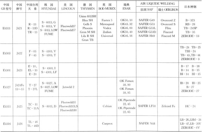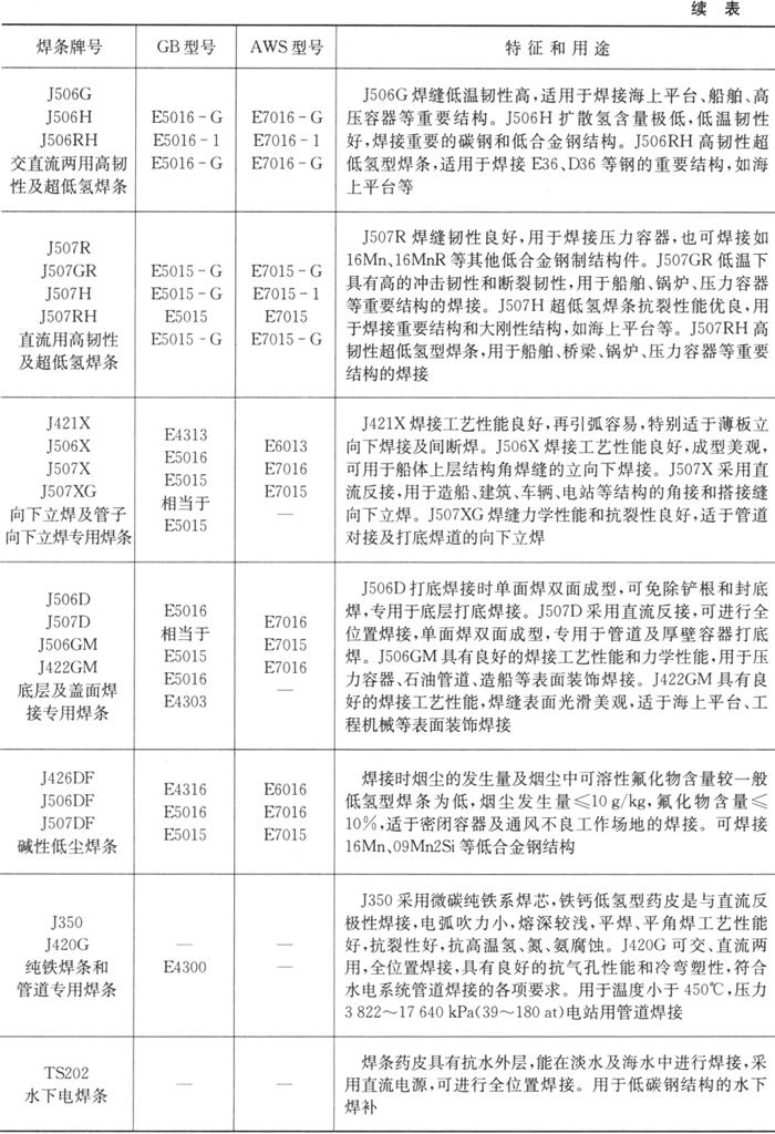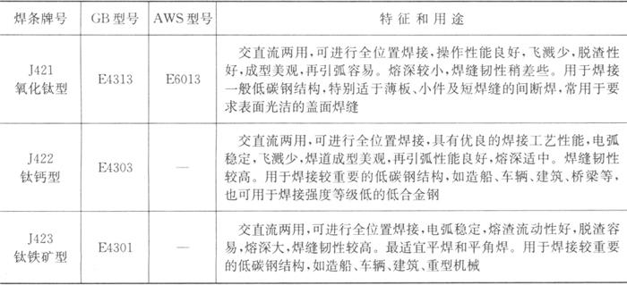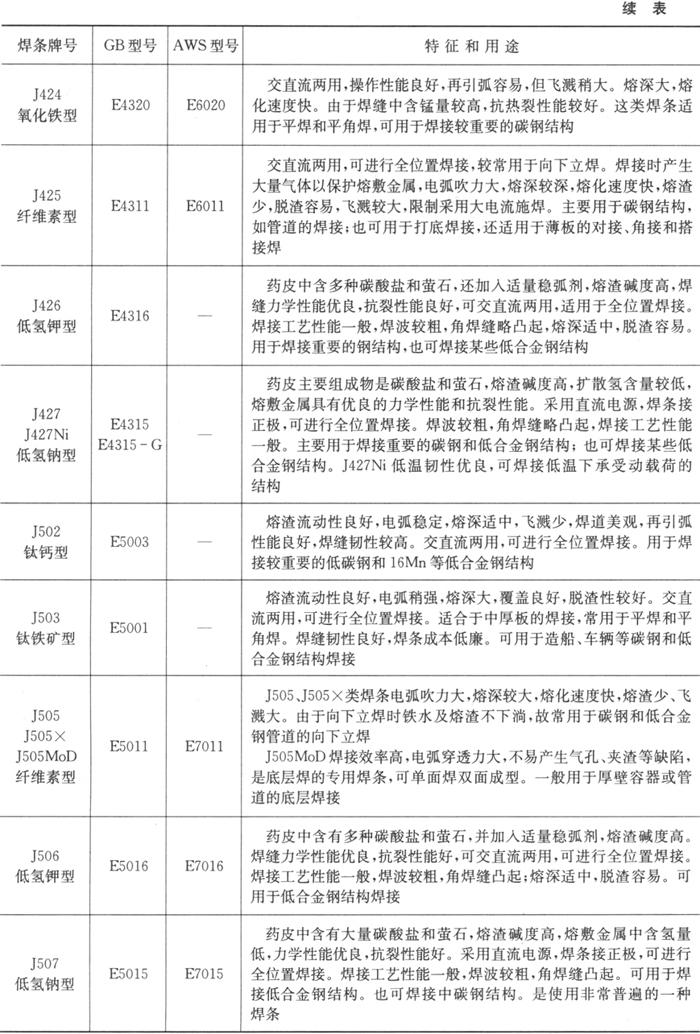 字词 | 各种手工电弧焊用碳钢焊条选用、适用范围 |