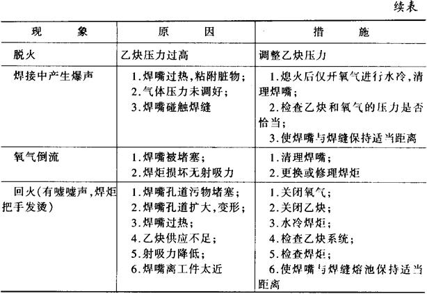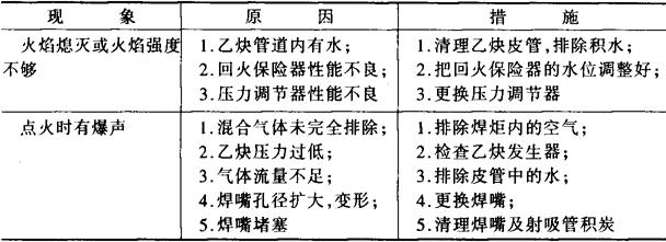 表12-10示出点火和焊接中发生的火焰异常现象、原因及消除方法。