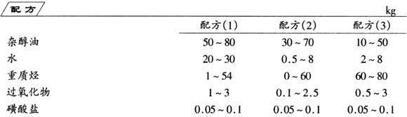 按配比分别将配方(1)、配方(2)和配方(3)中的全部物料混合、投料,在常温下搅拌10min,即得3种合成燃料油。制造方法参见中国专利:CN87108003A。