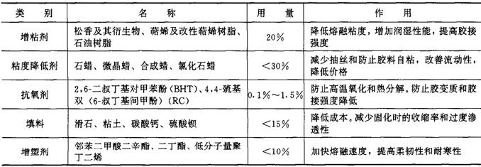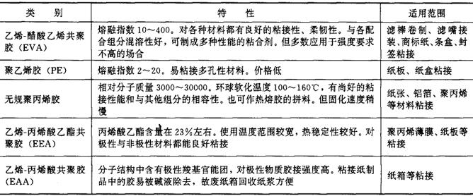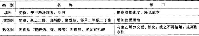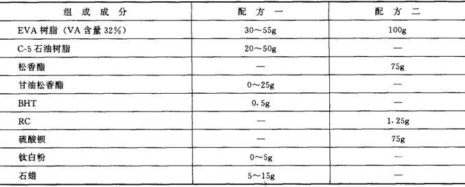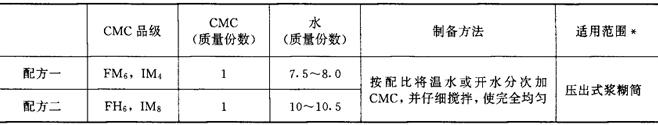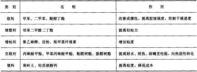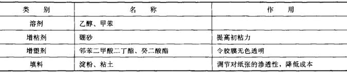 释义 | 合成胶粘剂 (一)羧甲基纤维素 1.组成与特性 羧甲基纤维素(CMC)是以纤维素为原料,在碱(如氢氧化钠)存在下,与氯乙酸作用,生成羧甲基纤维素的钠盐。 羧甲基纤维素为白色粉末。普通产品醚化度在0.5~0.8左右,可溶于水。溶液为中性或微碱性,具有较高粘性,温度变化不会导致凝胶。 2.质量指标 羧甲基纤维素主要质量指标见表5-5-8。 表5-5-8 羧甲基纤维素质量指标 注:*FH特高,为特高粘度,FH6为高粘度,FM6为中等粘度。 3.制备 表5-5-9是两种不同粘度羧甲基纤维素胶粘剂的配制比例。 表5-5-9 羧甲基纤维素胶粘剂的配制 注:*上表中水量再增加1倍,则适用于自流式浆糊筒。 4.使用特点 羧甲基纤维素胶粘剂具有防霉防蛀,保存稳定性好的特点,其水溶液的粘度可任意调节,适应性广,常用作烟草薄片胶粘剂,卷烟搭口,烟箱、盒封口,瓦楞纸拼接及办公用浆糊。但干燥速度不够快。 (二)聚醋酸乙烯类胶粘剂 1.组成与特性 聚醋酸乙烯及其共聚物在热塑性高分子胶粘剂中占有重要地位。主要品种包括: (1)聚醋酸乙烯乳液:将醋酸乙烯在水介质中,以聚乙烯醇作保护胶体,借助于乳化剂的作用,在一定pH下,采用游离基型引发系统,进行乳液聚合制得。聚合物相对分子质量30000~80000,粒径为0.1~2μm。 (2)醋酸乙烯共聚乳液:将醋酸乙烯与乙烯、丙烯酸酯等在均聚的相似条件下共聚制取。 聚醋酸乙烯类白乳液胶粘剂对纸制品、纸与铝箔复合粘合有优良的胶接强度。共聚乳液较之均聚乳液在粘接性、柔韧性及耐水性方面有不同程度的改善。 2.常用配合剂 在聚合物乳液中加入增塑剂、增粘剂、填料或溶剂等添加物即可调制成所需胶粘剂。常用配合剂见表5-5-10。 表5-5-10 聚醋酸乙烯类胶粘剂的配合剂 3.制备 (1)聚醋酸乙烯乳胶: 配方:醋酸乙烯 85(质量份数) 复合增塑剂 9 聚乙烯醇 6 辛醇 适量 过硫酸锭 0.25 水 100 将聚乙烯醇在水中加温溶解,70℃左右加入辛醇、部分增塑剂和部分过硫酸铵,滴加醋酸乙烯单体。反应5~6h后,加入剩余过硫酸铵,升温至85~90℃,继续反应0.5h。降温,加入剩余部分增塑剂,温度降至40℃以下出料。 (2)聚醋酸乙烯-丙烯酸酯共聚乳胶: 原料:醋酸乙烯 引发剂(如过硫酸铵或偶氮二异丁腈) 丙烯酸酯 乳化剂(如十二烷基磺酸钠) 不饱和有机酸酯 将一部分醋酸乙烯、丙烯酸酯、不饱和有机酸和乳化剂混合,在50℃温度下乳化0.5h。加入引发剂,边搅拌边升温。在60~80℃时,滴加完剩余的混合单体和辅料,保温反应1~2h,直至无回流现象。降温至50℃以下出料。 上述两类聚合反应中,乳化剂、保护胶体及引发剂的品种和用量以及聚合温度、pH、单体加入方式等对聚合物乳液的性质如粘度、颗粒度、稳定性均有影响。一般较快的搅拌速度(100r/min以上)、65~75℃、分批滴加单体的方式可获得细粒度的均匀乳液。 4.使用特点 聚醋酸乙烯类胶粘剂为水溶性乳液,具有良好的安全操作条件;常温干燥速度较快;初始胶接强度较高;固化后胶层无色透明,且易与各种添加剂混溶,可配制性能多样的胶粘剂,在纸品粘接中用途广泛。表5-5-11列出了几种国产聚醋酸乙烯类胶粘剂的物性指标与适用范围。 表5-5-11 聚醋酸乙烯类胶粘剂产品举例 (三)聚乙烯醇胶粘剂 1.聚乙烯醇基本性能 聚乙烯醇由聚醋酸乙烯在乙醇或甲醇水溶液中,以碱或酸为催化剂水解而得,其性能主要取决于原始聚醋酸乙烯的结构与水解程度。表5-5-12为水解度与聚乙烯醇性能的关系。 通用型聚乙烯醇胶粘剂水解度为85%~89%,易溶于水;95%~99.8%水解度的为耐水性胶粘剂。 表5-5-12 不同水解度聚乙烯醇品种举例 2.常用配合剂 聚乙烯醇胶粘剂的常用配合剂见表5-5-13。 表5-5-13 聚乙烯醇胶粘剂常用配合剂 在聚乙烯醇胶粘剂中加入2%~15%的氯化锂、氯化钙等可防止其在空气中干燥变硬。与丙烯酸或聚烯酰胺组成再湿性胶粘剂可用于标签粘接。夏天配胶可加胶液总量0.2%~0.3%的甲醛作防腐剂。 3.配制 将聚乙烯醇粉末5~10份与95~90份的水混合,在搅拌下加热到80~90℃,直至溶解完全,呈浅黄白色透明液体即成聚乙烯醇胶粘剂。俗称合成胶水。 4.使用特点 聚乙烯醇胶粘剂通常为水溶液形式,使用安全,无污染。低浓度的胶粘剂仍显示良好的粘接力,价格低廉。聚乙烯醇胶膜具有较高的强度、韧性和耐热性,对纸品的粘接强度是淀粉的2~3倍。但粘接速度较慢,常被用作其他胶粘剂的配合剂。 (四)聚乙烯醇缩醛胶粘剂 1.基本特性 聚乙烯醇缩醛是由聚乙烯醇在酸性催化剂存在下与醛类进行缩醛化反应而制得。 缩醛的性能决定于原始聚乙烯醇的结构、水解程度、醛类的化学结构和缩醛化程度。一般随所用的醛的碳链增长和缩醛度增高,在水中的溶解度下降,而溶于醇等有机溶剂,韧性和耐湿性提高。 2.常用配合剂(表5-5-14) 表5-5-14 聚乙烯醛缩醛胶粘剂的配合剂 将酚醛树脂与聚乙烯醇缩醛并用,可作为热熔胶粘剂。 3.制备 (1)高缩醛化聚乙烯醇胶粘剂: 配比:聚乙烯醇:甲醛(36%)=1∶2~4(质量份数) 将聚乙烯醇溶于热水中,呈透明无颗粒胶液,在温度70℃左右缓慢加入甲醛,进行缩合反应。甲醛加完后升温至90℃,保温反应2h。降温,加入适量尿素进行氨基化处理。再加适当中和剂,调节pH至中性,降温至45℃出料。 (2)部分氧化改性聚乙烯醇缩甲醛胶粘剂: 配比:聚乙烯醇:甲醛(36%)=1∶0.15~0.25(质量份数) 氧化剂(过氧化氢、过硫酸铵等); 终止剂(硫酸亚铁、硫代硫酸钠等)。 将