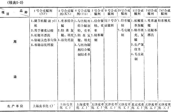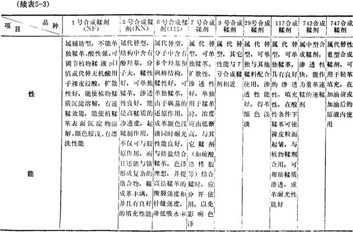 表5-3 合成鞣剂