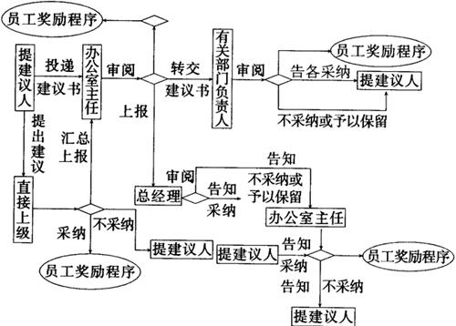 释义 | 合理化建议提案流程 说明 1.所采用的工具——合理化建议箱,设在公司的方便且安全部位,由人力资源部负责管理和定期收取。 2.对于合理化建议无论采纳与否,都应给予答复,并视情况提出奖励意见或进入制度制订、修订程序。 |