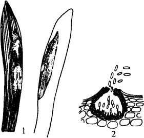 【症状】 叶上产生褐色斑点,后扩大成黄褐色大型斑,最后病部干枯,出现黑色小点(图7-17)。