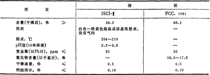释义 | 吡哆醇盐酸盐 别名 盐酸吡哆辛、盐酸B6醇、维生素B6、盐酸吡哆素 结构式 性能 白色至淡黄色结晶或白色结晶性粉末,无臭,有咸味。易溶于水(19g/100mL,25℃)和丙二醇(27.3g/100g,25℃),溶于乙醇(0.47g/100g,25℃)、甲醇和丙酮,不溶于醚和氯仿。10%的水溶液的pH2.2~3。由乙醇和丙酮的混合液重结晶,得板状或柱状晶体。于206℃熔化并部分分解。pH值2时于291nm处有吸收峰(0.01NH4Cl,E 质量规格(JSCI-Ⅱ;FCC,1981) 用途 大部分用作医药或进一步合成磷酸吡哆醛和脑复新等药物,也用作饲料添加剂、食品添加剂(改质奶粉中添加量0.Img/100g。成人每日需要量1.5~2mg)。还作为营养添加剂、紫外线吸收剂用于化妆品中。 国内生产厂 中科院上海生化所东风生化厂。 |