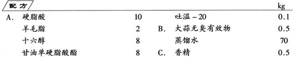分别将A中和B中的各组分混合,加热至75℃,分别得A组分和B组分。在搅拌下,将B组分加入A组分中,混合均匀。待温度降至40℃时,加入C组分香精,搅拌混合均匀,即为成品。