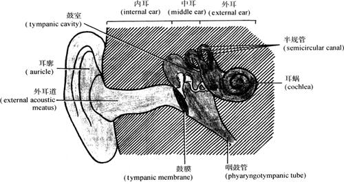 耳是听觉器官,也是平衡器官,可分为外耳(external ear)、中耳(middle ear)和内耳(internal ear)(图13-17)。