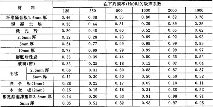 释义 | 吸声材料 利用吸声材料来降低噪声是常用的方法。因此有必要对常用的吸声材料作一介绍。一种材料吸收声能的能力常用吸声系数来表示。吸声系数的定义是投射到表面上的总能量减去从表面反射的能量与投射到表面上能量之比,用希腊字母α表示 式中 α——吸声系数; E1——投射到表面的能量; Er——从表面反射的能量。 完全反射的材料,吸声系数为零,完全吸收的材料吸声系数为1。 吸声系数在很大程度上取决于频率,因此给出材料的吸声系数集中在六个频率:125、250、500、 1000、2000及4000Hz在这个频率范围内,中间及较高频率的吸声系数较高。表5.3.7-1给出了几种常用材料的吸声系数。有一点很重要,表中给出的吸声系数以及由工厂提供的其他材料的吸声系数都是在一定实验条件下取得的。实际上,由于实验条件不一定很严格,而且混响噪声的变化和实验材料安装方法的不同等因素,都会使所测定材料的实际性能产生相当大的变化。尽管如此,表中的系数对选择吸声材料还是有帮助的。 表5.3.7-1 几种常用材料的吸声系数 一旦对噪声进行调查后,应进行频谱分析。然后根据资料选择对需要降低各种频率的噪声吸声系数最高的材料。由于噪声不一定是一种频率,因此可以用称为噪声衰减系数(NRC)或减噪系数来表示吸声材料的性能。 减噪系数是在250、500、1000及2000Hz时吸声系数的平均值。根据表5.3.7-1我们可以计算出各种材料的减噪系数。例如2.5mm厚玻璃纤维的减噪系数为 有时生产厂愿意用减噪系数而不用吸声系数。减噪系数的有效值仍取决于不同安装方法、声波的入射角以及混响频率。从表5.3.7-1可以看到有些材料在低频时吸声效果好,而另一些在高频时吸声效果好;而减噪系数在这些条件下是没有差别的。 还有两种材料不叫吸声材料而称为隔声材料和阻尼材料。隔声材料的主要性能指标是质量,严格地说是单位面积的质量,还要求一定的柔软性。铅是最好的隔声材料之一,常常在铅板加上一层泡沫材料一起使用。还有钢板、砖也是良好的隔声材料。 隔声材料通常用它吸收和反射声波的能力来评价它的隔声性能。术语“隔声量”,或称传递损失TL,是指入射的声波经过隔声材料后到另一边所损失的声功率。TL是用国际标准化组织ISO规定的方法测定的。其数学表达式为 TL=10log(1/τ) 式中 τ——透过的声能与入射声能之比。 τ常称为透声系数。有时用透声系数而不用TL来表示隔声材料的性能。 隔声量TL也可以用公式进行计算 TL=20logf+20logw一47 式中 f——一个特定的频率一般为入射频率,Hz; W——隔声材料表面密度,kg/m2;隔声量与吸声系数相比,TL的主要优点是以更有意义的dB表示。隔声量与吸声系数一样,是在不同频率下测定的。国际标准化组织还对围护结构的隔声性能采用隔声指数作为评价指标,即将所测得的隔声频率特性曲线与国际标准化组织规定的参考曲线按一定方法进行比较后读取的值。 阻尼材料是通过粘性材料的内摩擦力转换成热而将声能吸收。一般是以薄金属板主体涂上一层由填料、粘合剂和辅助材料组成的阻尼材料或将阻尼材料夹在两层薄板间。阻尼材料的性能以损耗因数η表示。η值越大,阻尼性能越好。 |