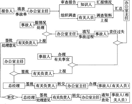 释义 | 员工人身安全事故处理流程 说明 1.事故发生后,办公室主任一方面审查事故报告,与知情人了解情况,另一方面派人调查根据调查报告,做出决定: (1)属一般责任过失,在办公室主任权限内,办公室主任便可做决定;属严重责任过失,办公室主任上报有关负责人签批处理决定,如事故重大必须报总裁签批有关事故处理意见。 (2)属非责任过失在办公室主任权限内,办公室主任可处理,如超过出权限外,办公室主任上报有关负责制签批处理意见。如超出有关负责人权范围外,必须呈报总经现签批处理意见。 2.责任过失与非责任过失界定及处理权限见《奖惩条例》。 |