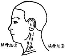 释义 | 呼吸肌麻痹 【取穴】 膈神经①:胸锁乳突肌前沿中点,斜向外刺入1~1.5寸(图240)。 图240 呼吸肌麻痹 膈神经②:胸锁乳突肌后沿,锁骨上窝2横指处,斜向下内侧刺入0.8~1.2寸。 外关:见头痛。 【配穴方法】 膈神经(-)双,外关(+)。 通电后出现膈肌收缩时为刺中,若出现颈肌与上肢肌收缩则示未刺中。 【治疗】频率慢(正常呼吸频率),电压以有刺激功能出现为度,通电时间依病情而定。 |