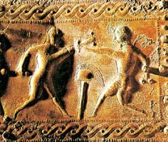 释义 | 哈尔斯塔特文化 西欧和中欧早期铁器时代第一期文化。 年代约公元前10—前5世纪。最早发现于奥地利萨尔茨堡附近的哈尔斯塔特村(Hallstatt),故名。此时铁器的使用日益普遍,但青铜间或仍被用于制造兵器和工具, 铁剑也仍保持青铜时代剑的形式, 并有各种刻着人物、动物等纹饰的青铜器物。 哈尔斯塔特文化时期的青铜浮雕 |