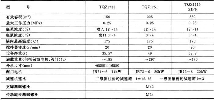 表6-3-17 平底喷放锅主要技术特征