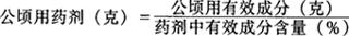 如果液态制剂中有效成分含量以质量/体积百分含量表示,则取用药剂以毫升计。如果农药制剂标签上农田面积以公顷计,而我们施药习惯以亩为单位面积,则可按1公顷=15亩加以换算。 每公顷地用水量对于农作物茎叶喷雾而言,主要看茎叶面积。作物处于尚未封垄的生长前期,常规喷雾一般每公顷用750升药液,封垄后的成株期,要用1200升药液。如采用低量喷雾技术,药液用量则大为降低。 虽然国内外对大田作物使用农药趋向于以单位面积用多少有效成分表示,单位是“克/公顷”。对于果树、林木来说,这个办法不行,最好还是用药液浓度表示,因为树木大小、密度(每公顷株数)不同,单位面积所用药液量及其中有效成分剂量会相差悬殊。药液浓度通常有两种表示法,一是倍数法,一是百万分浓度法。 倍数法常以制剂为准,如某50%乳油的1000倍液,是以制剂量算,不是以有效成分剂量算,它们的关系如下式: