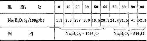 释义 | 四硼酸钠 〔学名〕四硼酸钠;硼酸钠 〔别名〕焦性硼酸钠;月石砂;硼砂 〔分子式〕Na2B4O7·10H2O 〔分子量〕381.37 〔质量规格〕 产品应符合中华人民共和国标准GB537-79 注:1.由井盐卤水生产的十水四硼酸钠,其氯化钠含量允许一级品≤0.2%;二级品≤0.3% 2.由西北原硼矿生产的十水硼酸钠,其硫酸钠含量允许一级品≤0.2%;二级品≤0.3%。 〔性质〕 1.纯品为无色半透明的结晶或白色结晶性粉末。无臭、味咸、在干燥空气中能风化。工业上一般常见的是十水硼砂,此外还有五水硼砂,也有天然硼砂,因含有杂质常带灰色或黄色,甚至有更深的色泽。 2.硼砂(Na2B4O7·10H2O)相对密度1.73(20/4℃),熔点75℃。 3.能溶于水,微溶于酒精。 4.硼砂的水溶液呈碱性,与硫酸作用即生成硼酸(H3BO3)。 5.加热,先失去部分结晶水,随即熔融,继续加热至318℃,失去全部结晶水而膨胀,成为白色多孔、疏松的块状,再加热至红热(730℃)就熔成无色的液体,这种液体能溶解各种金属氧化物。 熔成的无色液体冷却后形成透明无色、玻璃状的小珠,称为硼砂珠。金属氧化物熔于硼砂体内,其焰各显出特征的颜色,化学上用来鉴别金属。 〔制备方法〕 碳碱法生产硼砂 硼矿→焙烧→粉碎→碱解→过滤→碳化→结晶→干燥→成品 〔用途〕 1.铬革中和 中和作用温和,但不如小苏打均匀而深入,只起表面中和作用,宜用于要求有一定弹性的黑色鞋面革。 2.酪素溶解的助溶剂 用硼砂溶解的酪素溶液能抵抗腐败作用,较易保存。 3.用于剖层机带刀焊接 〔贮运使用注意事项〕 容器应密封,避免风化失水及受潮,贮存于干燥的库房中。 〔生产单位〕 天津红旗化工厂;张家口化工厂;沈阳农药厂。 在水中溶解度 硼砂与各种常见碱类pH值比较 |