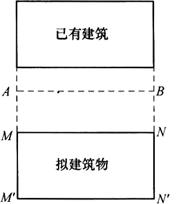 释义 | 园林建筑物定位 园林建筑物定位,就是将建筑物外廓的各轴线交点(简称角桩),测设到地面上,作为基础放样和主轴线放样的依据。根据现场定位条件的不同,可选择以下方法。 1.利用“建筑红线”定位 在施工现场如果有规划管理机关设定的“建筑红线”,则可依据此“红线”与建筑物的位置关系进行测设。 如图14-5所示,在花店施工现场有规划管理部门设定的“建筑红线”AB,则可依据此“红线”与花店的位置关系进行测设,测设方法如下: 图14-5 利用建筑红线定位 1)图上查取相应距离从平面图上,查得花店轴线MP上的P点与A点间的距离4P、花店的长度PQ。 2)定基点P,Q在桩点A安置经纬仪,照准B点,在该方向上用钢尺量出AP和AQ的距离,定出P,Q两点。 3)放样花店将经纬仪分别安置在P和Q两点,以AB方向为起始方向精确测设90°角,得出PM和QN两方向,并利用此两方向线用钢尺丈量出花店各放样点。 4)校核检查∠MPQ和∠NQP盘左盘右半测回角值之差应在1′以内,距离丈量误差应在1/2000以内,精度符合,即在现场进行调整;否则,应重新测设。 2.依据与原建筑物的关系定位 在规划设计过程中,如规划范围内保留有原建筑或道路,一般应在规划设计图上予以反映,并给出其与拟建新建筑物的位置关系,则可依据此关系进行测设,具体方法有以下几种。 (1)平行线法 此法适用于新旧建筑物长边平行的情况。如图14-6所示,先用细线绳沿着已有的建筑物的两端墙皮延长出相同的一段距离得A,B两点,分别在A,B两点安置经纬仪,以AB或BA为起始方向,测设出90°角方向,在其方向上用钢尺丈量定出M,M′和N,N′4个角的角点。对角度和长度进行检查,与设计值相比较,角度误差不超过1′,长度误差不超过1/2000。 图14-6 用原有建筑物平行线法定位 (2)延长直线法 此法适用于新旧建筑物短边平行的情况。拟建筑物与已有建筑物在一条直线上。如图14-7所示,按上法用细线绳测设出C′,D′两点,在C′点安置经纬仪,延长直线C′D′,在延长线方向上用钢尺丈量,定出P′和Q′两点;将经纬仪分别安置在P′和Q′两点上,以P′C′和Q′C′为起始方向,测设出90°角方向线,并在该方向线上用钢尺丈量,定出拟建筑物M,P和N,Q4个角点,最后校核角度和长度,精度同上。 图14-7 拟建筑物与已有建筑物在一条直线上 (3)直角坐标法 此法适用于新旧建筑物的长边与短边相互平行的情况。拟建筑物与已有建筑物长边互相垂直。如图14-8示,定位时按上述测设方法测设出P′点;安置经纬仪于P′点,测设P′P的沿长线方向,在其方向上用钢尺丈量设置P,Q两个角点;分别在P,Q两点安置经纬仪,测设与PQ垂直的PM和QN的方向,并在其方向线上用钢尺丈量PM和QN的长度,即得M,N两个角点。最后进行角度和长度校核。 图14-8 与已有建筑物长边互相垂直 (4)根据原有道路测设 拟建筑物长边平行于道路中心线时多用此法。如图14-9所示,首先按上面介绍过的方法定出路中心线A,B两点,分别在A,B点上安置经纬仪,以AB和BA为起始方向,测设出90°角方向,再在其方向线上用钢尺丈量,定出拟建筑物4个角点C,E和D,F,并按上述介绍的方法进行角度和长度校核。 图14-9 拟建筑物长边平行道路中心线 |