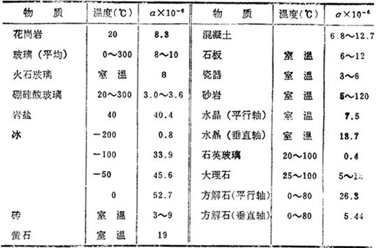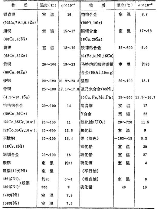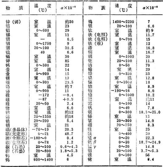固体的线膨胀系数