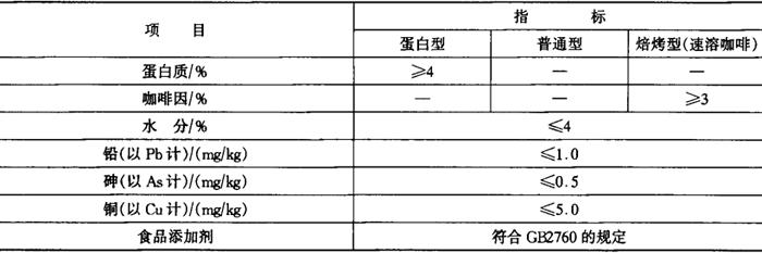 释义 | 固体饮料卫生标准(摘自GB7101) (一)主题内容与适用范围 本标准规定了固体饮料的分类、技术要求及检验方法。 本标准适用于以糖、乳或乳制品、蛋或蛋制品、果汁或/和食用植物提取物等为主要原料,添加适量的辅料或食品添加剂制成的固体制品。本标准不适用于烧煮型咖啡。 (二)分类 1.蛋白型固体饮料 以糖、乳及乳制品、蛋及蛋制品或植物蛋白等为主要原料,添加适量的辅料或/和食品添加剂制成的蛋白质含量≥4%的制品。 2.普通型固体饮料 以糖、果汁,或以食用植物浓缩提取物为主要原料,添加适量的辅料或/和食品添加剂制成的蛋白质含量<4%的制品。 3.焙烤型(速溶咖啡)固体饮料 以焙烤后的咖啡豆磨碎所提取的浓缩液为主要原料,添加适量的辅料或/和食品添加剂,经脱水制成的冲溶后即可饮用的制品。 (三)技术要求 1.感官指标 有该品种特有的色泽、香气和滋味,无结块,无刺激、焦糊、酸败及其他异味,冲溶后呈澄清或均匀混悬液,无肉眼可见的外观杂质。 2.理化指标 理化指标见表5-2-73。 表5-2-73 注:三合一或二合一咖啡中咖啡因含量按比例折算。 3.微生物指标 微生物指标见表5-2-74。 表5-2-74 注:致病菌系指肠道致病菌及致病性球菌。 (四)检验方法 1.感官检验 取5g左右均匀混合的被测样品置于一洁净的白色搪瓷皿中,在自然光线下用肉眼观察其色泽和外观形态,按标签上所述的食用方法于透明的玻璃烧杯内用80℃左右蒸馏水冲溶稀释后,立即嗅其香气,辨其滋味,静置2min后,看烧杯底部有无杂质。 2.理化检验 (1)水分的检验 按GB5009.3执行。 (2)蛋白质的检验 按GB5009.5执行。 (3)砷的检验 按GB5009.11执行。 (4)铅的检验 按GB5009.12执行。 (5)铜的检验 按GB5009.13执行。 (6)咖啡因的检验 按《饮料中咖啡因的测定方法》执行。 3.微生物检验 (1)菌落总数的检验 按GB4789.2执行。 (2)大肠菌群的检验 按GB4789.3执行。 (3)致病菌的检验 按GB4789.4、GB4789.5、GB4789.10、GB4789.11执行。 (4)霉菌的检验 按GB4789.15执行。 |