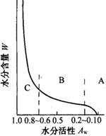 释义 | 固体饮料的基本特性 (一)流动性 固体饮料在输送时经常发生附着,凝聚等现象,因此在输送固体饮料时往往产生流动性的问题。为了改善流动性需要减少粉末饮料的水分含量,或进行造粒和添加防固化剂。 (1)静止角 静止角(Angle of repose)又称堆积角,是表示粉体食品流动性的最一般特性,堆积角30°以下时流动性最好,30°~45°时中等,45°以上时凝聚性加强,流动性变差。粉粒体的大小是影响固体饮料静止角的重要因素,随粒子变大静止角成正比例减小,流动性变好。 (2)压缩度 压缩度C可用下式表示: 式中 ρc——压实密度 ρb——松散密度 一般速溶咖啡的压缩度为30%~35%,脱脂乳粉压缩度25%~30%,全脂乳粉压缩度40%~50%。压缩度20%以下时,流动性变好,容易从料斗、旋风分离器中流出,而压缩度超过40%的粉粒体,则不易排出。粒子直径大时,压缩度变小,流动性良好。如果将固体饮料粉末造粒,可降低压缩度,提高流动性。 (二)固体饮料的热特性 固体饮料的形状因干燥方法而有所不同,冻结干燥、喷雾干燥的粉末固体饮料为多孔性结构,热特性值随孔隙率而变化。固体饮料的生产离不开加热和冷却的传热操作,因此必须了解固体饮料的热特性。 (1)比热容 固体饮料的热特性主要有热导率和比热容,比热容为粉粒和媒体各自性质的平均值。设粉粒比热容cs,媒体比热容cg质量分别为ms、mg,则比热容c为: 式中m可用粉粒体积比Φ或空隙率ε表示: 式中 ρs——粉体粒子密度 ρg——气体密度 (2)热导率 粉粒体的热导率可以通过粉粒体填充层传热特性进行研究,包括:①固体接触传热;②固体内传导率;③空隙间辐射、导热;④固体面向辐射传热;⑤接触面传热,其中①、②、⑤为串联,③、④为并联导热。一般粉体的热传导根据粒子的集合和充填状态而变化,粉体系热导率λ可以简单地用固体部分的热导率λs和媒体部分的热导率λg合成表示,单位体积的热导率可用下式表示: 或λ=(1-ε)λs+ελg (λs>10λg,ε<30%) (三)固体饮料的粒度 固体饮料的最基本特性,包括溶解性、流动性和填充密度都受粉粒体的粒度分布影响,另外,粉体饮料的变质是由空气的氧化所致,其氧化速度与粒径成正比,因此固体饮料的粒度是重要的物性。固体饮料含糖多,容易吸湿和凝聚。固体饮料中的脂肪成分在常温下也会黏附。 根据横坐标为粒子直径(μm)、纵坐标为质量频度(%/100μm)作出的速溶咖啡粒度频度分布曲线可知,固体饮料通过造粒或添加乳化剂等,使其速溶化后,粒度分布范围变广,同时由于造粒,小粒粉体消失,频率分布曲线有向大粒子移动的倾向。 (四)固体饮料水分活性与安全保藏水分含量 (1)水分活性(Aw) 水分活性是水分热力学的活动度,一般可通过蒸汽压法或一定温度下平衡质量测定法,按下式求出: Aw=p/p0=RH/100 式中 p0——一定温度下纯水平衡蒸汽压 p——同温度下系统中水的平衡蒸汽压 RH——相对湿度(%) 纯水(水分100%)p=p0,Aw=1.0。 无包装的干燥食品容易吸湿,从而引起变色(褐变)、蛋白质分解等物性变化,以及发霉等的质量劣化。过去常将固体饮料的水分含量(W)作为控制指标,近年来Aw作为管理指标,愈加显得重要,而且较为合理。根据变质速度与水分活性Aw的曲线,以单分子层吸收水分量Wm为界限,当Aw低于Wm时,固体饮料以脂肪、色素类、蛋白质的氧化而引起的变质为主。相反,当Aw大于Wm时,多发生脂肪的水解、非酶褐变以及酶活化产生的变色、退色和蛋白质分解作用。Aw高的制品,霉菌、酵母和细菌易作用。单分子层吸收水分量Wm根据食品的种类而不同,一般在2%~10%范围内,应根据不同干燥方法获得的制品水分含量,进行质量控制。例如冻结真空干燥制品水分50%左右,首先应注意防止脂肪氧化和变色。 图2-6-1为W-Aw曲线,图2-6-2为吸收等温线。按Aw范围,分为三部分,即A区单分子层吸收水,B区多分子层吸收水和C区毛细管凝缩水。根据系统中水的存在形态,WAw曲线各不相同,一般可分为以下4种类型: 图2-6-1 水分含量(W)-水分活性(Aw)曲线 图2-6-2 吸收等温线 ①淀粉类单分子层吸收水分量Wm约6%,此时的Aw约为0.15。 ②蛋白质类Wm约3.5%,Aw0.15。 ③蔬菜、乳粉类Wm约2.0%,Aw0.06。 ④果汁类 果汁粉富含糖类,Aw接近0,看不到Wm值。 (2)安全保藏水分含量 安全保藏水分是保证质量安全与Aw相对应的水分含量(Ws)。为了确定Ws,可以制造基本作为目标制品水分含量前后的各种水分含量的制品,将其在低于与之相当的Aw,或在高于相应的Aw的相对湿度下贮藏,从感官、理化和微生物等指标判定其质量的劣化程度。最初以B、E、T法求出的单分子吸收水分含量Wm作为安全保藏水分量,但从图2-6-1可知,除单分子层吸收区外,更多存在多分子层吸收区(B),为此Caurie提出以按下式规定的固形物浓度的自然对数为纵轴,以Aw或相对湿度RH为横轴,求得吸收等温线,并将其称为自然水分吸收等温线(图2-6-3)。 图2-6-3 自然吸收等温线 由图2-6-2 RH和Inc曲线可知,RH85%以前为一直线,因此 式中 c——任一Aw下的固形物浓度 c0——Aw为零时的浓度 γ——斜度反对数 食品安全保藏水分Ws与lnc0的关系: 根据Caurie理论,从热力学方面分析,一般食品在Aw=0时的吸收热Qs为47.28kJ,Aw=0.784时为零,将上式中Ws用Qs代入,就可求出Ws。 |