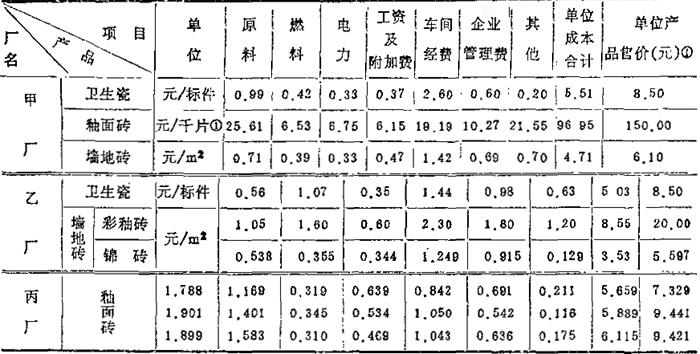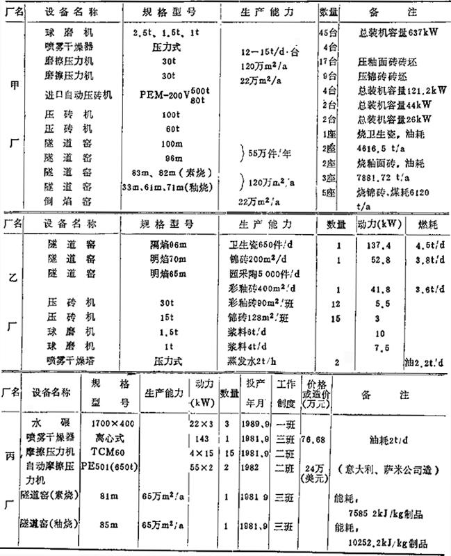 表6-11 国内典型建筑卫生陶瓷工厂主要财务经济指标对比