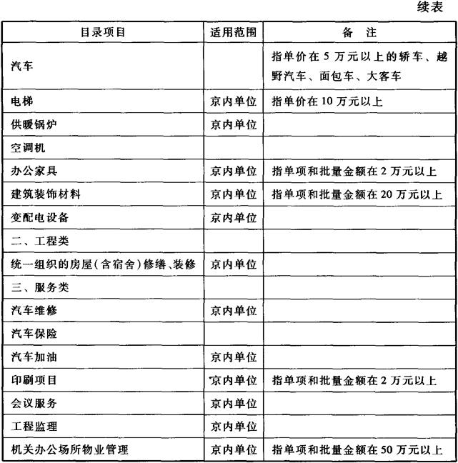 释义 | 国务院办公厅关于印发《中央预算单位2007-2008年政府集中采购目录及标准》的通知 国务院各部委、各直属机构: 《中央预算单位2007-2008年政府集中采购目录及标准》已经国务院同意,现印发给你们,请遵照执行。 附件:中央预算单位2007-2008年政府集中采购目录及标准 二〇〇七年五月五日 附件:中央预算单位2007-2008年政府集中采购目录及标准 一、集中采购机构采购项目 以下项目必须按规定委托集中采购机构代理采购: 注:表中“适用范围”栏中未注明的,均适用所有中央预算单位。 二、部门集中采购项目 部门集中采购由部门自行组织,可以委托集中采购机构或采购代理机构采购,其中涉及集中采购机构采购的项目,应当委托集中采购机构组织采购。以下项目原则上应当实行部门集中采购: (一)货物类。救灾物资、防汛物资、抗旱物资、农用物资、储备物资、网络专用设备、医疗设备和器械、计划生育设备、交通管理监控设备、港口设备、农用机械设备、气象专用仪器设备、人工影响天气作业设备、测绘专业仪器设备、消防设备、警用设备和用品、专用教学设备、广播电视和影像设备及专业摄影器材、文艺设备、体育设备、海关专用物资设备、税务专用物资装备、边界勘界和联检专用设备、质检专用仪器设备、金融系统专用设备及有价单证和凭证、救助船舶和直升机、执法船艇、检察诉讼设备、法庭内部装备、救护车等特种车辆、缉私船、地震专用仪器设备、水利专用仪器设备(水保、水文专用仪器设备)。 (二)工程类。部门确定的本系统单位公用房建设及修缮和装修工程。 (三)服务类。本部门或本系统信息管理系统开发及维护项目,部门确定的其他有特殊要求的专用服务项目。 三、分散采购限额标准 除集中采购机构采购项目和部门集中采购项目外,各部门自行采购单项或批量达到50万元以上的货物和服务的项目、60万元以上的工程项目应执行《中华人民共和国政府采购法》和《中华人民共和国招标投标法》有关规定。 四、政府采购货物和服务公开招标数额标准 政府采购货物或服务的项目,单项或批量采购金额一次性达到120万元以上的,必须采用公开招标方式。政府采购工程公开招标数额标准按照国务院有关规定执行,200万元以上的工程项目应采用公开招标方式。 |