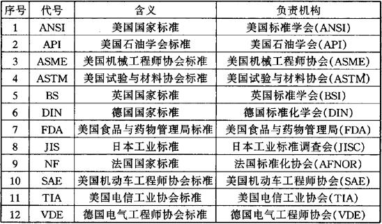 释义 | 国外先进标准 国外先进标准是指未经ISO确认并公布的其他国际组织的标准、发达国家的国家标准、区域性组织的标准、国际上有权威的团体标准和企业(公司)标准中的先进标准。主要的国外先进标准代号及组织见表4-3: 表4-3 国外先进标准代号及组织 |