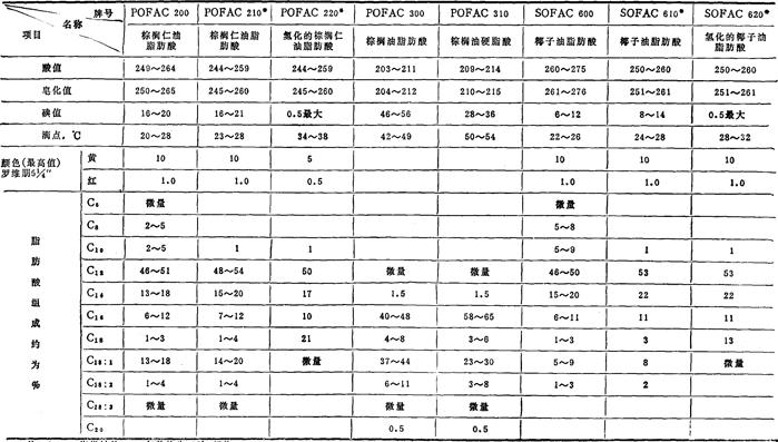 注:除油酸为180kg桶装外,其余均为25kg袋装。