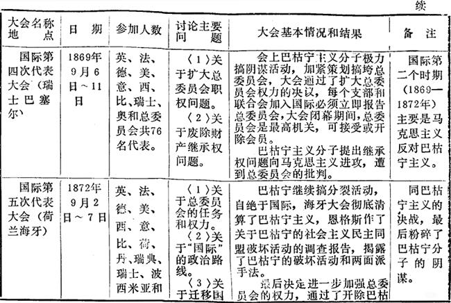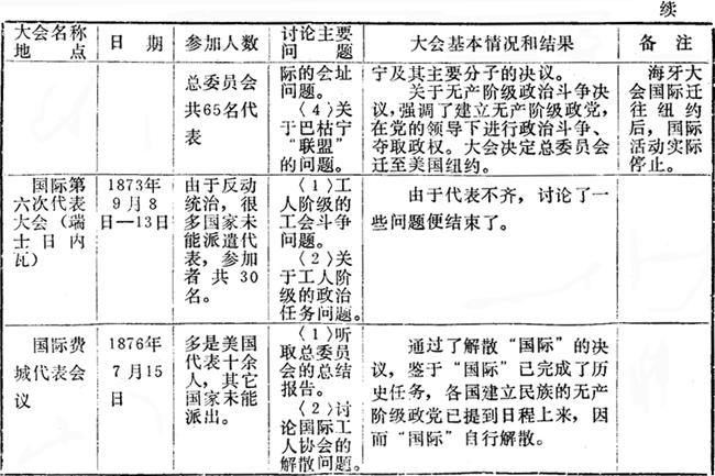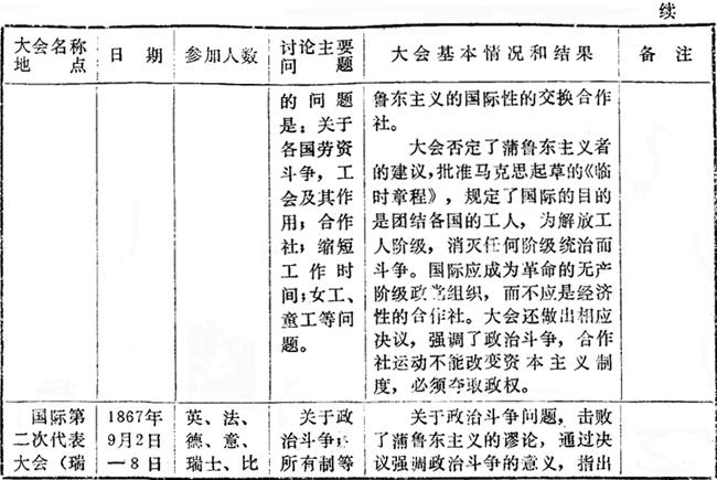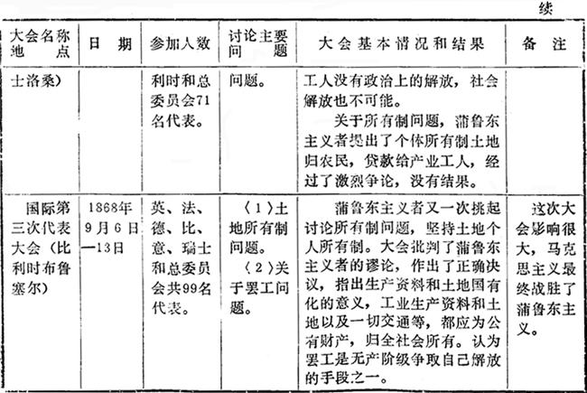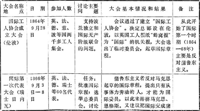 国际工人协会(第一国际)历次代表大会概况表