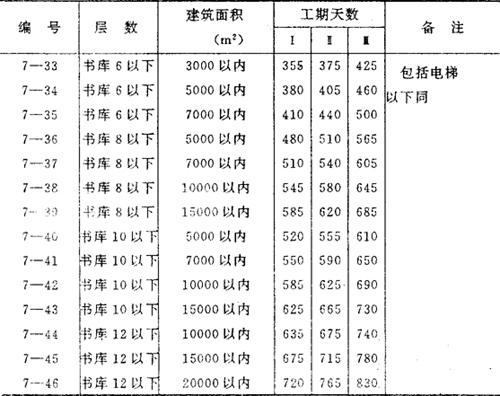 图书馆工程工期定额
