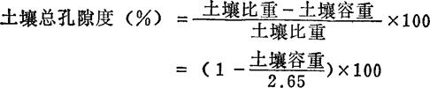 (2)在一定地区内研究土壤物理性状,需经常测定土壤总孔隙度时,可假定土壤比重为一常数,直接测定土壤容重,按照一定的经验公式,计算出土壤的总孔隙度。例如某一地区得到有如下的经验公式: