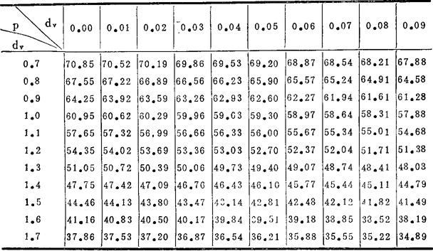 表4-5 土壤容重(dv)与土壤总孔隙度(p)查对表